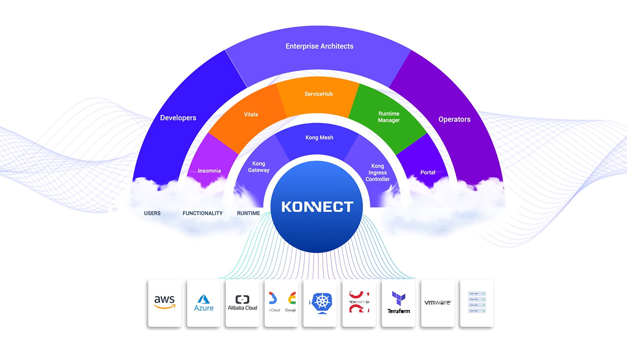 Kong Konnect provides reliable, secure and observable connectivity for services across any infrastructure. The SaaS-based management plane accelerates deployments and provides access to functionality modules, including the Kong ServiceHub, Kong Vitals, Kong Runtime Manager and the Kong Developer Portal. Kong Immunity and Insomnia continue to be available for self-management to customers. The runtimes – Kong Gateway and Kong Mesh – are self-managed and provide the flexibility to support any hybrid or multi-cloud deployment pattern.