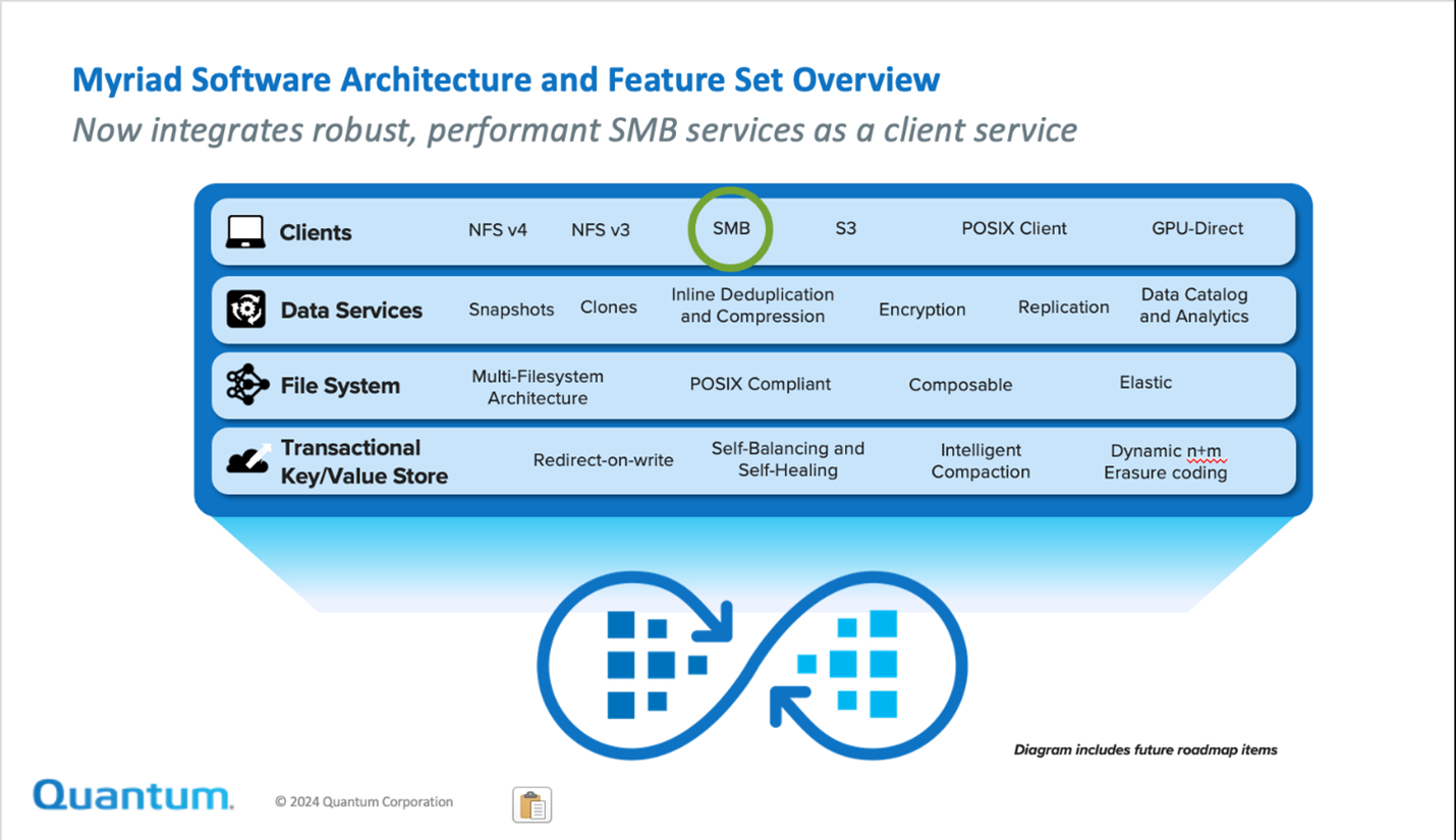 The SMB capabilities will be available for early access customers for both StorNext and Myriad in Q2. StorNext customers can then purchase the solution in Q3 as a turnkey Quantum Professional Services bundle that includes full-service installation, configuration, and management. The feature will be generally available for all Myriad customers in Q3.