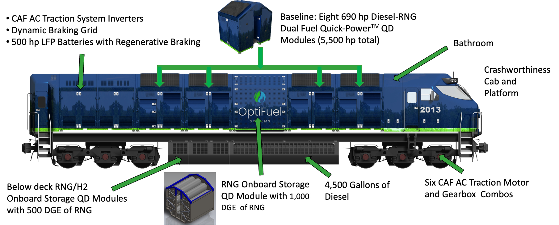 OptiFuel Systems Unveils a Breakthrough with a Low Risk, Affordable Modernization Approach Achieving Zero Emissions for the Class 1 Locomotive Fleet Using a Diesel-RNG Dual Fuel “No Tender” Solution