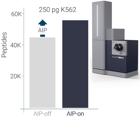 The new AIP enables highly efficient ion transfer from the collision cell to the orthogonal acceleration region of the TOF analyzer of the timsTOF Ultra 2 mass spectrometer. For SCP-relevant amounts of 250 pg, AIP typically generates >15% increases in protein IDs and >20% increases in peptide IDs - to ensure high sequence coverage. Similar improvements are observed in immunopeptidomics.