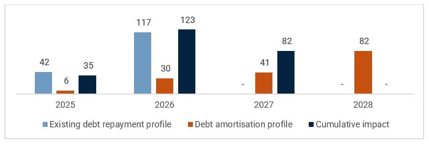 - New Facilities have a longer dated maturity of 14 March 2028, including repayment holiday until 30 September 2025.