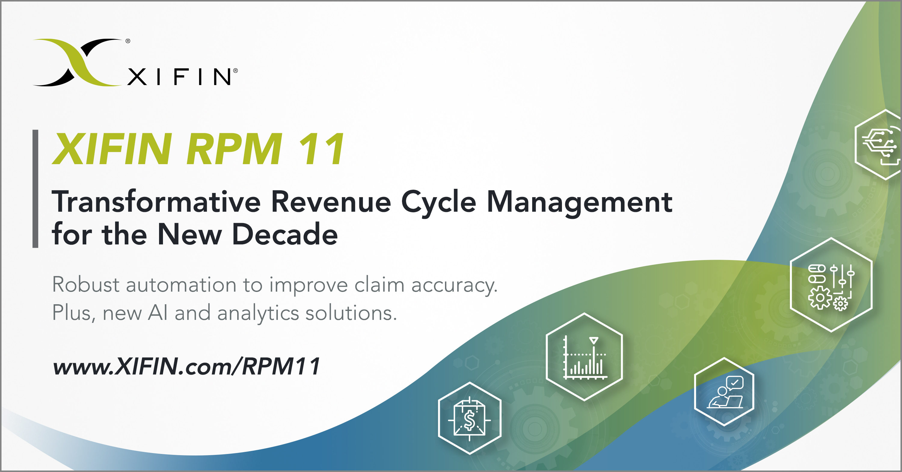 SAN DIEGO--(BUSINESS WIRE)--Today’s diagnostic laboratory leaders face more challenges than ever before – from increasing volumes to more rigorous payor requirements and changing PAMA reporting deadlines. To help lab leaders meet these demands, XIFIN today introduced XIFIN RPM 11, a transformative revenue cycle management (RCM) platform that features a new level of robust automation, enhanced portals, and advanced analytic and artificial intelligence (AI) options that diagnostic providers can use to respond to increasing market demands, patient expectations and reimbursement challenges. The latest version of XIFIN’s flagship RCM platform optimizes cash collections, enables real-time connectivity and error correction, and provides enhanced self-service for patients and physicians.