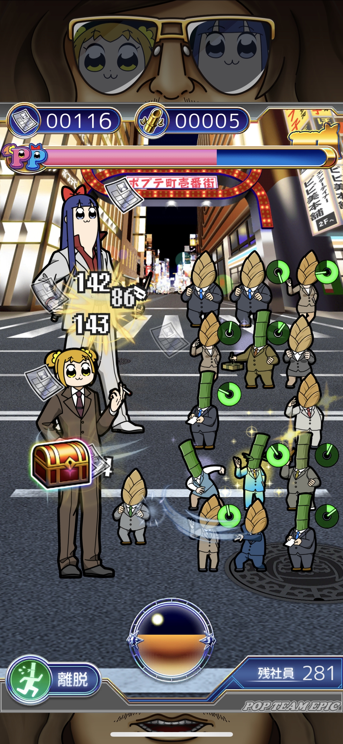 在這款惡搞App中,玩家要努力集合Takeshobo員工並擊敗pop子和pipi美來闖關。