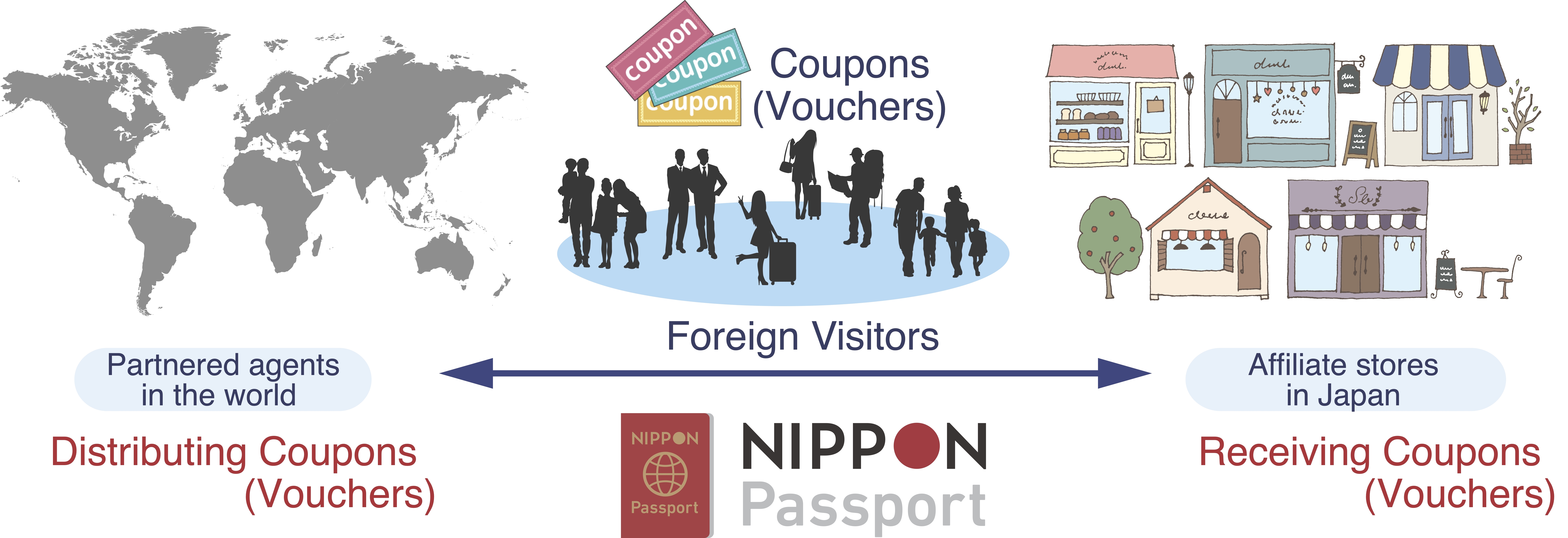 NP Pass服務吸引旅行前和旅途中的外國遊客到日本並將他們送至日本,引領他們光顧我們的加盟店和餐廳。