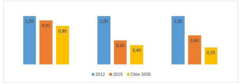 En lien avec ce nouveau plan climat, Arkema a décidé de réviser son objectif de diminution de ses achats nets d’énergie (2) par rapport à 2012 en l’alignant sur la cible long terme de 2030 :