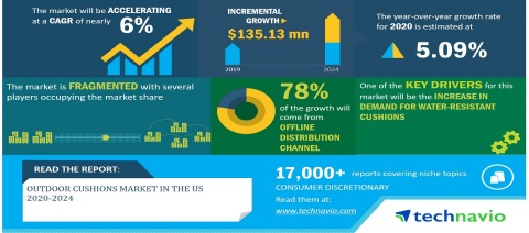 LONDON--(BUSINESS WIRE)--The outdoor cushions market in the US is expected to post a CAGR of nearly 6% during the period 2020-2024, according to the latest market research report by Technavio. Request a free sample report