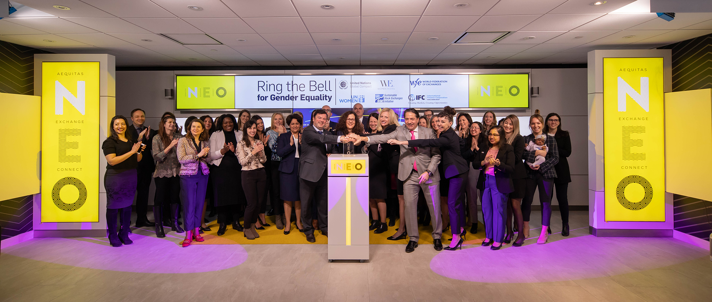 TORONTO--(BUSINESS WIRE)--NEO is proud to take part in the global collaboration across more than 75 stock exchanges to “Ring the Bell for Gender Equality” in celebration of International Women’s Day 2020. Now in its sixth consecutive year, the initiative is a partnership between the World Bank’s International Finance Corporation, Sustainable Stock Exchanges (SSE) Initiative, UN Global Compact. UN Women, the World Federation of Exchanges and Women in ETFs. to raise awareness about the business case for women’s economic empowerment and the opportunities for the private sector to advance gender equality and sustainable development.