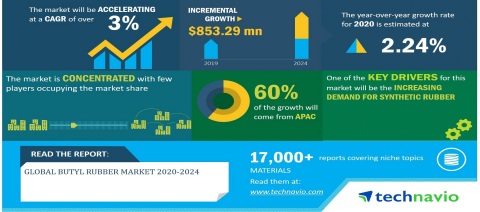 LONDON--(BUSINESS WIRE)--The global butyl rubber market is expected to post a CAGR of more than 3% during the period 2020-2024, according to the latest market research report by Technavio. Request a free sample report