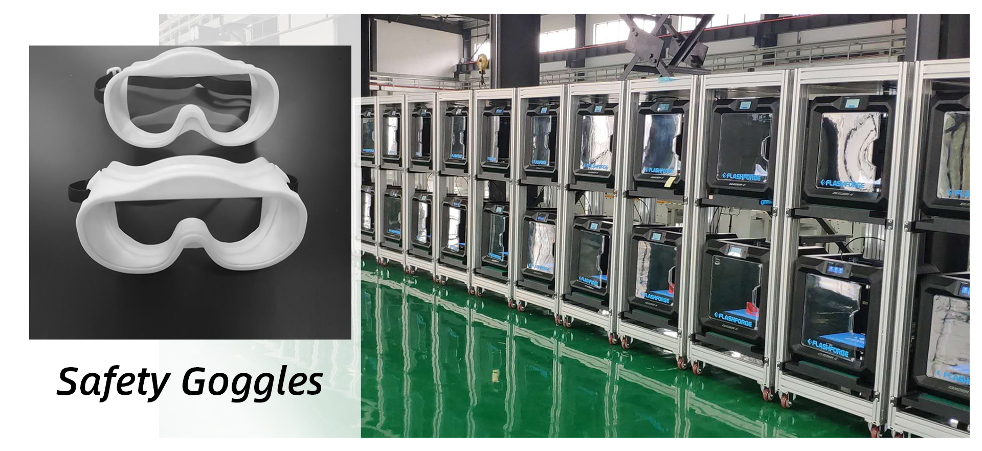 Desde el brote de COVID-19, todas las industrias de China han ofrecido ayuda y contribuido a la lucha contra el mismo. La ropa de protección médica, las mascarillas y las gafas de seguridad son los artículos más necesarios y escasos para el personal médico de primera línea. La escasez de la oferta es siempre un desafío, y la brecha de la demanda es aún mayor porque las gafas de seguridad se producen a escala pequeña, su producción es difícil de ampliar y el ciclo de producción mediante artesanía tradicional es largo. El equipo de investigación y desarrollo de esta empresa ha utilizado la tecnología de impresión en 3D para diseñar, desarrollar y finalizar el producto en un plazo de 153 horas y, finalmente, ha realizado la producción a gran escala de las gafas de seguridad impresas en 3D. Se podido comprobar que las gafas de seguridad con impresión en 3D son más ligeras y fáciles de llevar, y están mejor selladas y protegidas contra el empañado durante mucho tiempo.