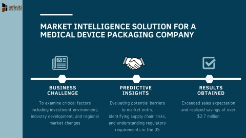 LONDON--(BUSINESS WIRE)--Infiniti Research, a leading market intelligence solutions provider, has recently announced the completion of its latest success story on market intelligence solution for a medical device packaging company. This success story highlights how Infiniti’s market intelligence solution helped a medical device packaging company to successfully enter the US market and realize savings of over $2.7 million.