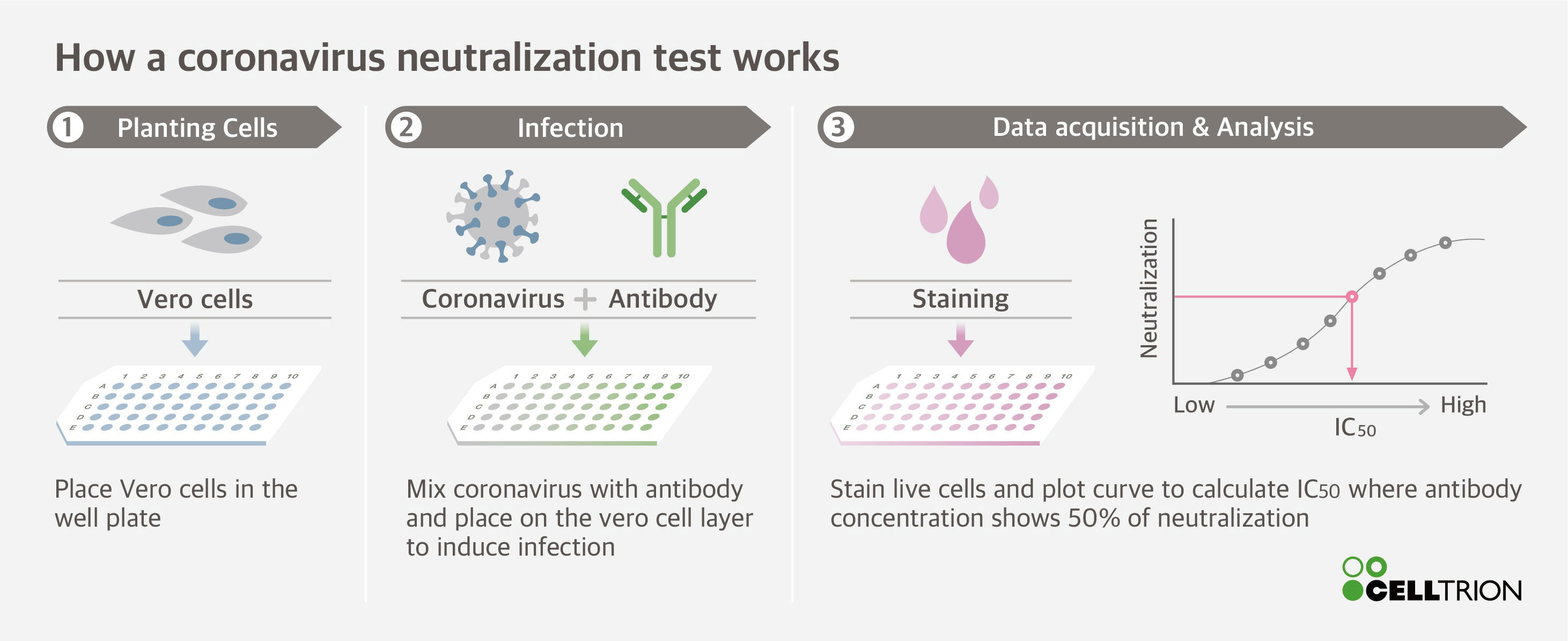 In samenwerking met de Korea Centers for Disease Control and Prevention (KCDC) had Celltrion aanvankelijk 300 verschillende typen antilichamen die het SARS-CoV-2-antigen binden geïdentificeerd en zekergesteld. Deze zijn gescreend op basis van hun vermogen om zich te binden aan het spike-eiwit van het virus. Vervolgens was Celltrion in staat in totaal 38 krachtige neutraliserende antilichamen vast te leggen, waarvan 14 antilichamen krachtige neutraliserende uitwerking bleken te hebben op SARS-CoV-2.