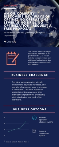 LONDON--(BUSINESS WIRE)--A premier analytics solutions provider, Quantzig, has announced the completion of its latest drilling optimization for a leading oil company. This success story offers comprehensive insights into the solutions and analytical methodologies that helped the client to boost operations efficiency by 23%.