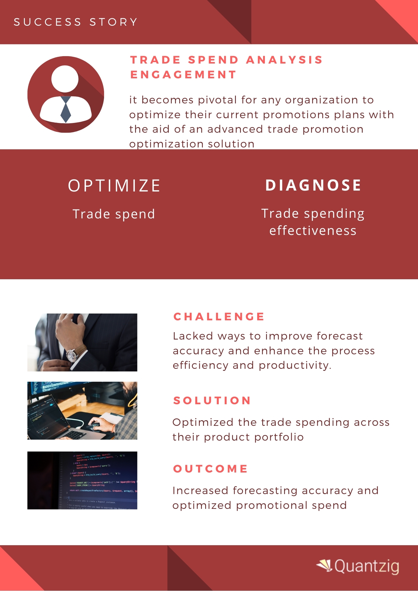 LONDON--(BUSINESS WIRE)--Quantzig, a premier analytics solutions provider announced the completion of their latest trade spend analysis engagement for a renowned personal care product manufacturer. The client wanted to seek ways to improve forecast accuracy and enhance the process efficiency and productivity. The engagement helped the client create a trade calendar based on the business rules, constraints, and goals