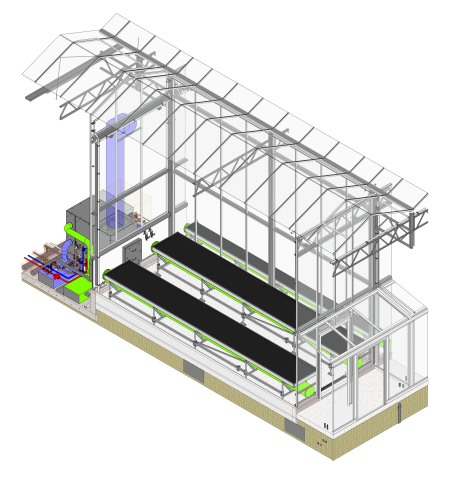 Construido por Bosman van Zaal, Serre Red es uno de los centros más avanzados diseñados hasta la fecha para la investigación de cuarentenas. Consta de 63 compartimentos de entre 15 y 52 m2 dotados de climatización, filtrado del aire y cierres de acceso individuales. El abundante equipamiento técnico se ha instalado en una galería subterránea para evitar el exceso de sombra. Otras características del invernadero, que está completamente electrificado, son el doble acristalamiento aislante, el sombreado exterior, el almacenamiento en frío/caliente y la desinfección en autoclave para esterilizar todo el material, incluidos el agua y los residuos, antes de su salida del recinto.