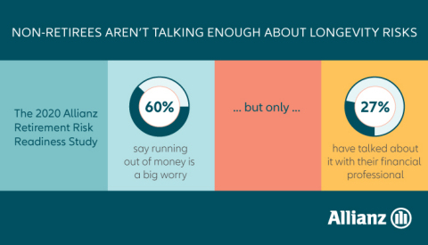 MINNEAPOLIS--(BUSINESS WIRE)--As Americans evaluate their finances during these challenging times, many financial professionals may be missing opportunities to shift conversations about retirement from accumulation to protection. The new 2020 Retirement Risk Readiness Study from Allianz Life Insurance Company of North America (Allianz Life) surveyed three categories of Americans to get different perspectives on retirement: pre-retirees (those 10 years or more from retirement); near-retirees (those within 10 years of retirement); and those who are already retired. The findings reveal gaps in conversations with financial professionals that can help clients protect their retirement assets from some of the risks that can derail savings strategies.