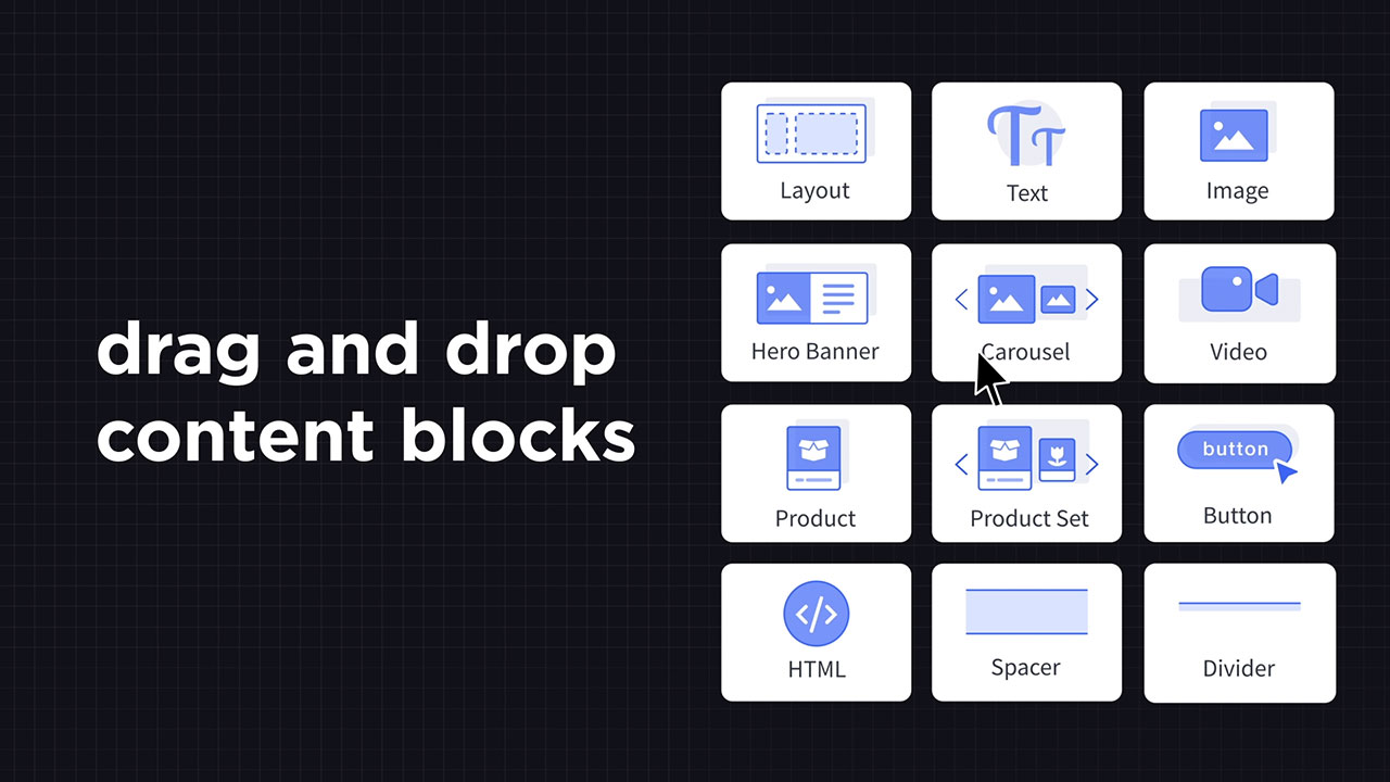 Intuitive, no-code visual editor enables drag-and-drop design functionality across entire ecommerce storefront