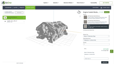 NORTH HUNTINGDON, Pa.--(BUSINESS WIRE)--The ExOne Company (Nasdaq: XONE), de wereldleider in industriële zand- en metaal 3D-printers die gebruik maken van bindtechnologie, kondigde vandaag de lancering aan van zijn bijgewerkte Quick Ship metal 3D printing services, met een nieuwe digitale offertetool en materialen.