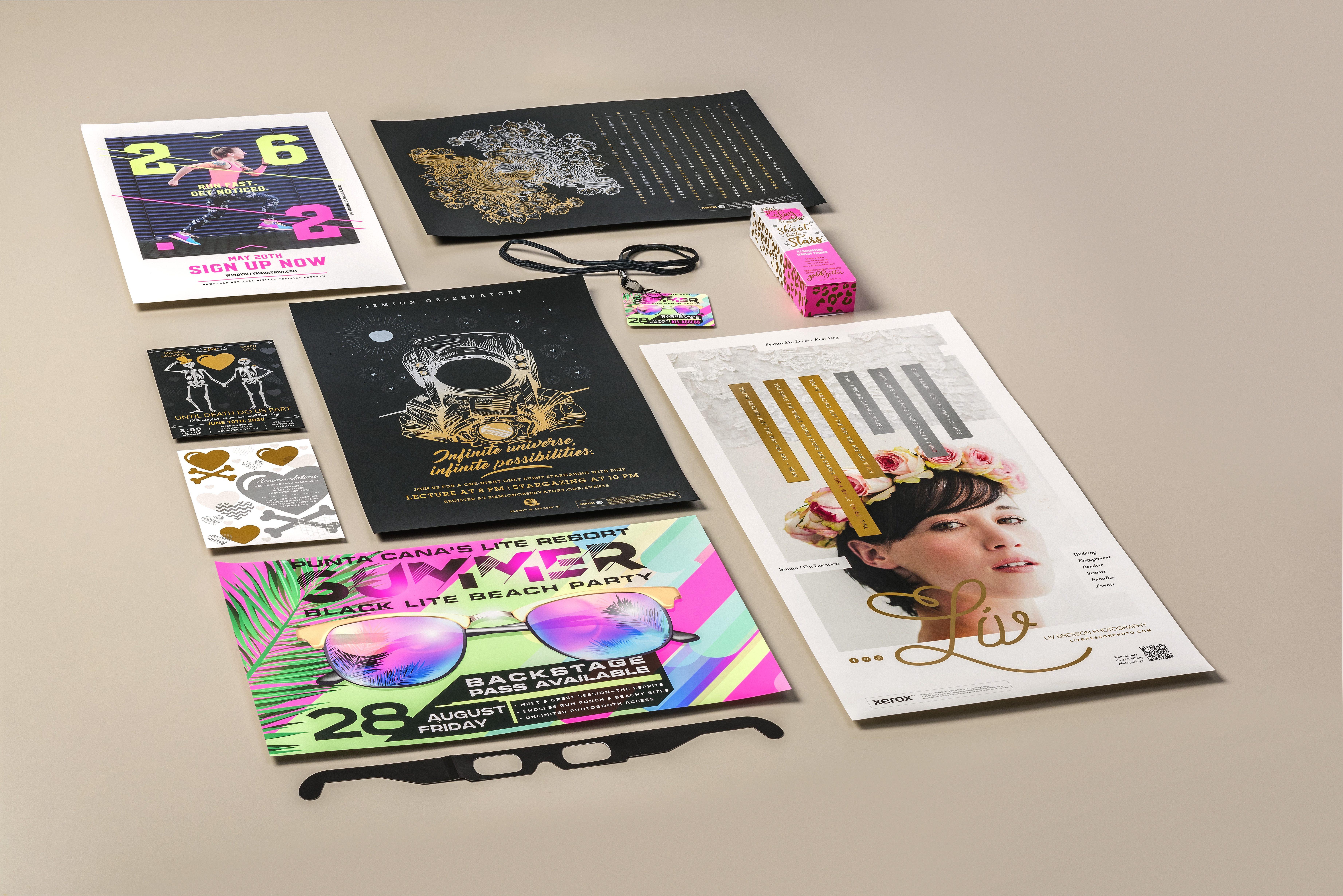 Il Xerox Adaptive CMYK+ Kit per Xerox Versant offre tre opzioni: il Xerox Vivid Kit (oro, argento, bianco e trasparente), Xerox Fluorescent Kit (ciano, magenta e giallo) – oppure una combinazione Xerox Vivid + Fluorescent Kit per tutti gli 11 colori. Il kit Adaptive funziona con le versioni EFI DFE della Versant 180 e Versant 180 dotate di Performance Package.