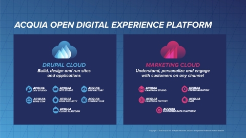 BOSTON--(BUSINESS WIRE)--La empresa de experiencia digital Acquia anunció hoy el lanzamiento de su nueva plataforma Acquia Open Digital Experience Platform (DXP). Acquia Open DXP funciona con la tecnología de Acquia Marketing Cloud y Acquia Drupal Cloud, una solución unificada que libera el valor de los datos y el contenido para que las organizaciones puedan crear rápidamente nuevas experiencias digitales. Los especialistas en marketing y desarrolladores ahora disponen de una plataforma única y fácil de usar para construir, personalizar y coordinar trayectorias con diversas experiencias en todos los canales de interacción con el cliente, como por ejemplo, pantallas táctiles, chat, voz y mucho más.