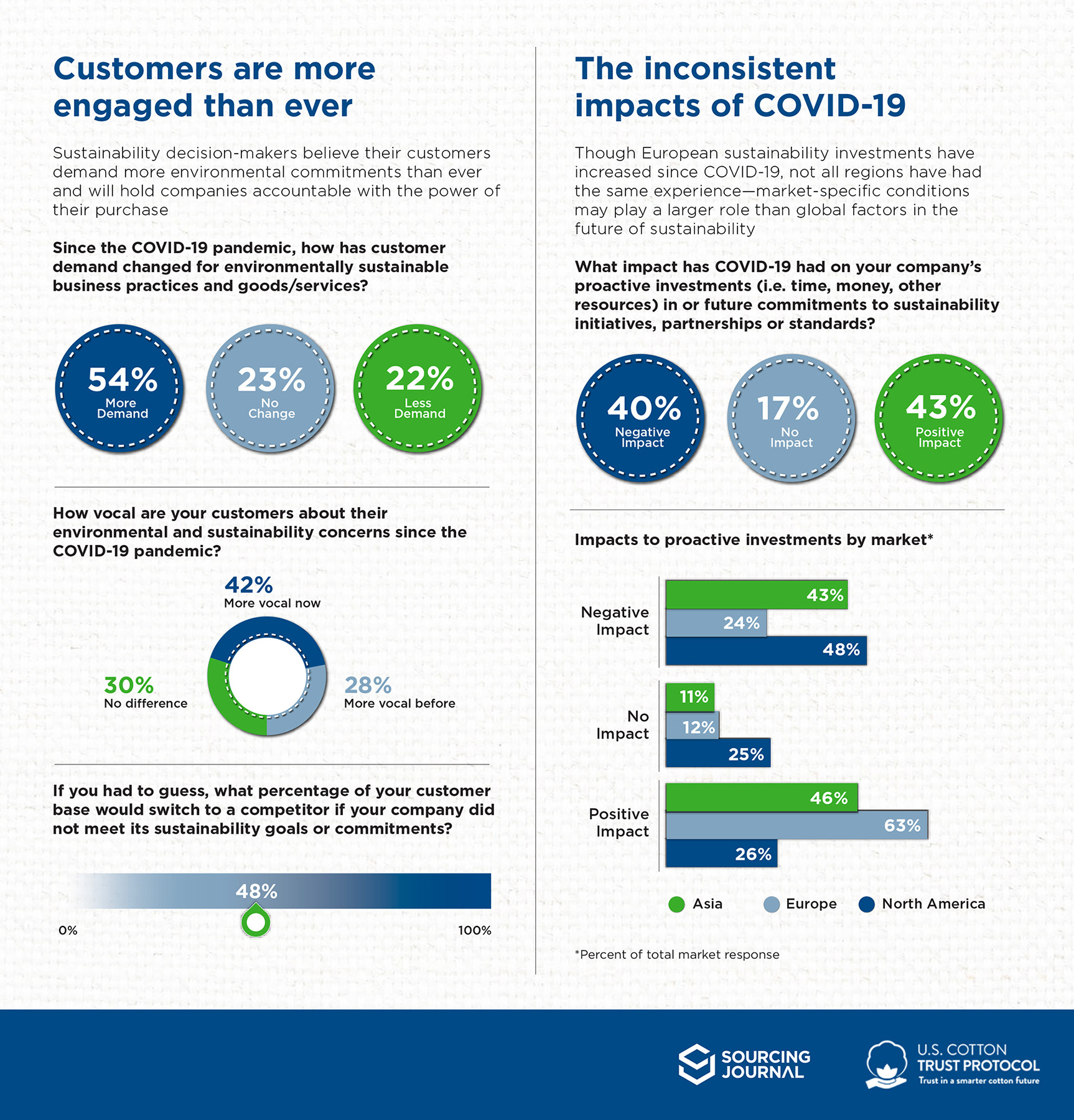Durchgeführt wurde die Umfrage durch das U.S. Cotton Trust Protocol mit dem Ziel, den Einfluss der COVID-Pandemie auf Nachhaltigkeitsprogramme bei Marken und Einzelhändlern zu bestimmen.