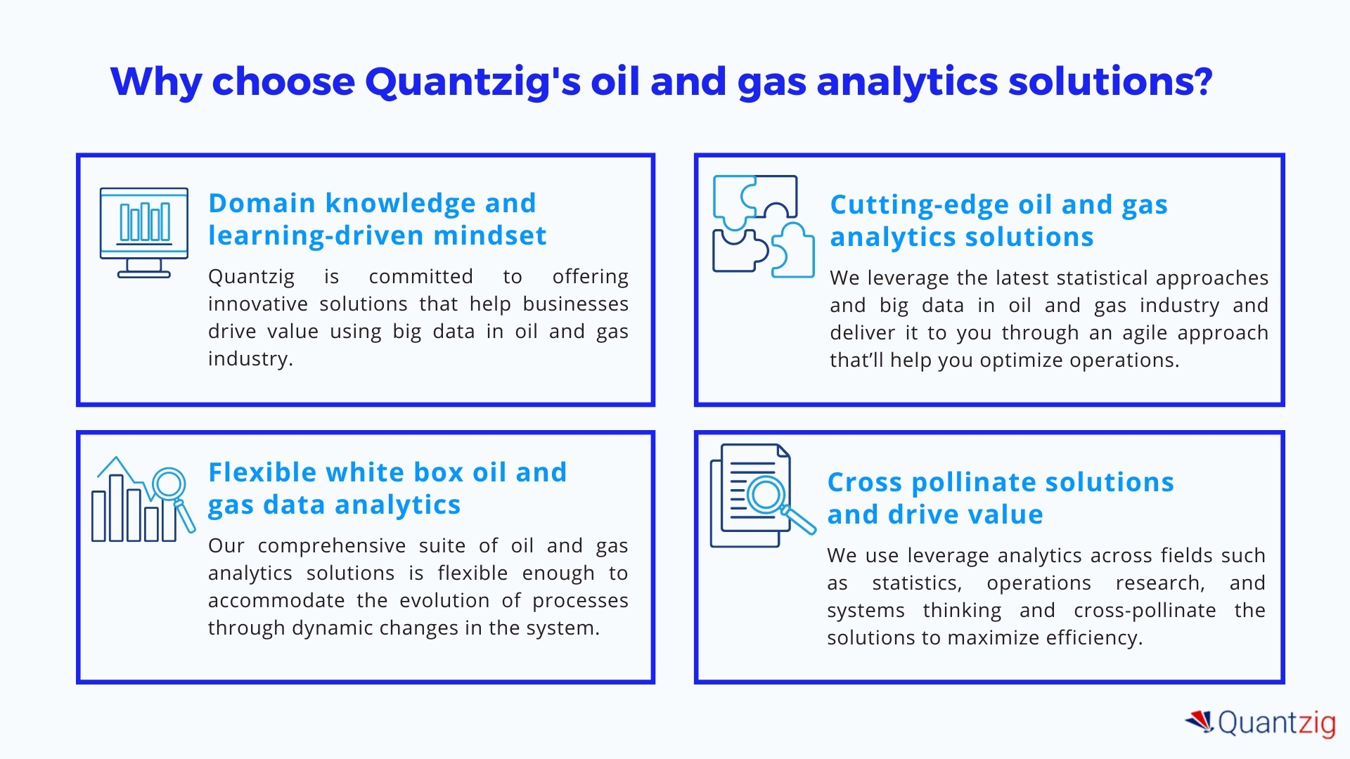 Quantzig’s comprehensive suite of oil and gas analytics solutions empowers businesses with-
