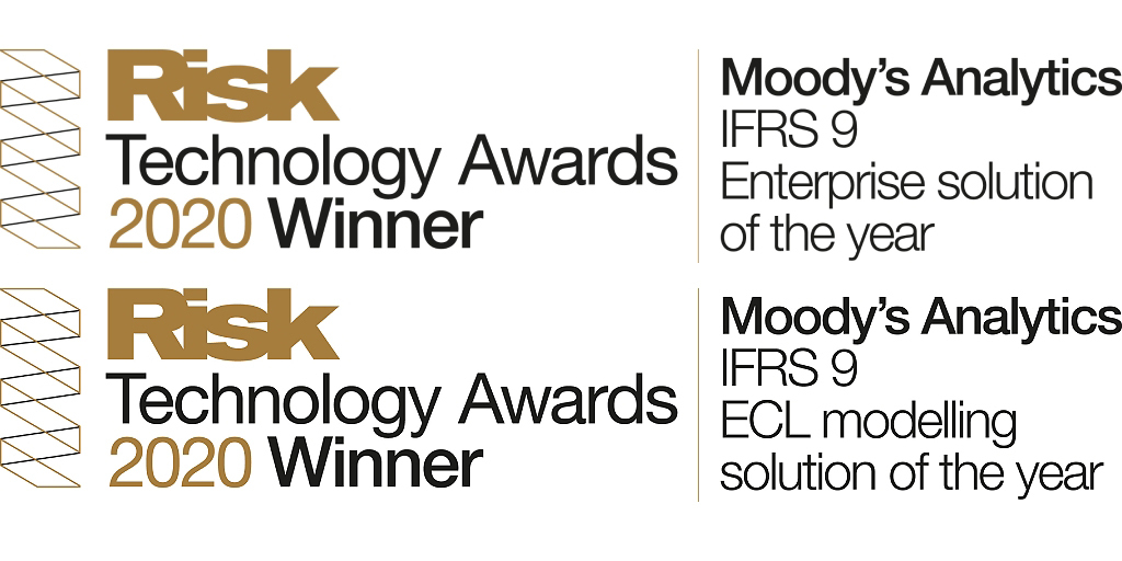 NOVA YORK--(BUSINESS WIRE)--Pelo segundo ano consecutivo, a Moody’s Analytics ganhou os prêmios de Tecnologia de Risco por IFRS 9 – Solução Corporativa do Ano e IFRS 9 – Solução de Modelagem ECL do Ano. Os dois prêmios IFRS 9 levam a Moody’s Analytics a somar sete no programa de prêmios de Tecnologia de Risco 2020.