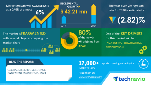 COVID-19 Impacts: Global Selective Soldering Equipment Market Will Accelerate at a CAGR of Almost 6% Through 2020-2024 | Increasing Electronics Production to Boost Growth | Technavio