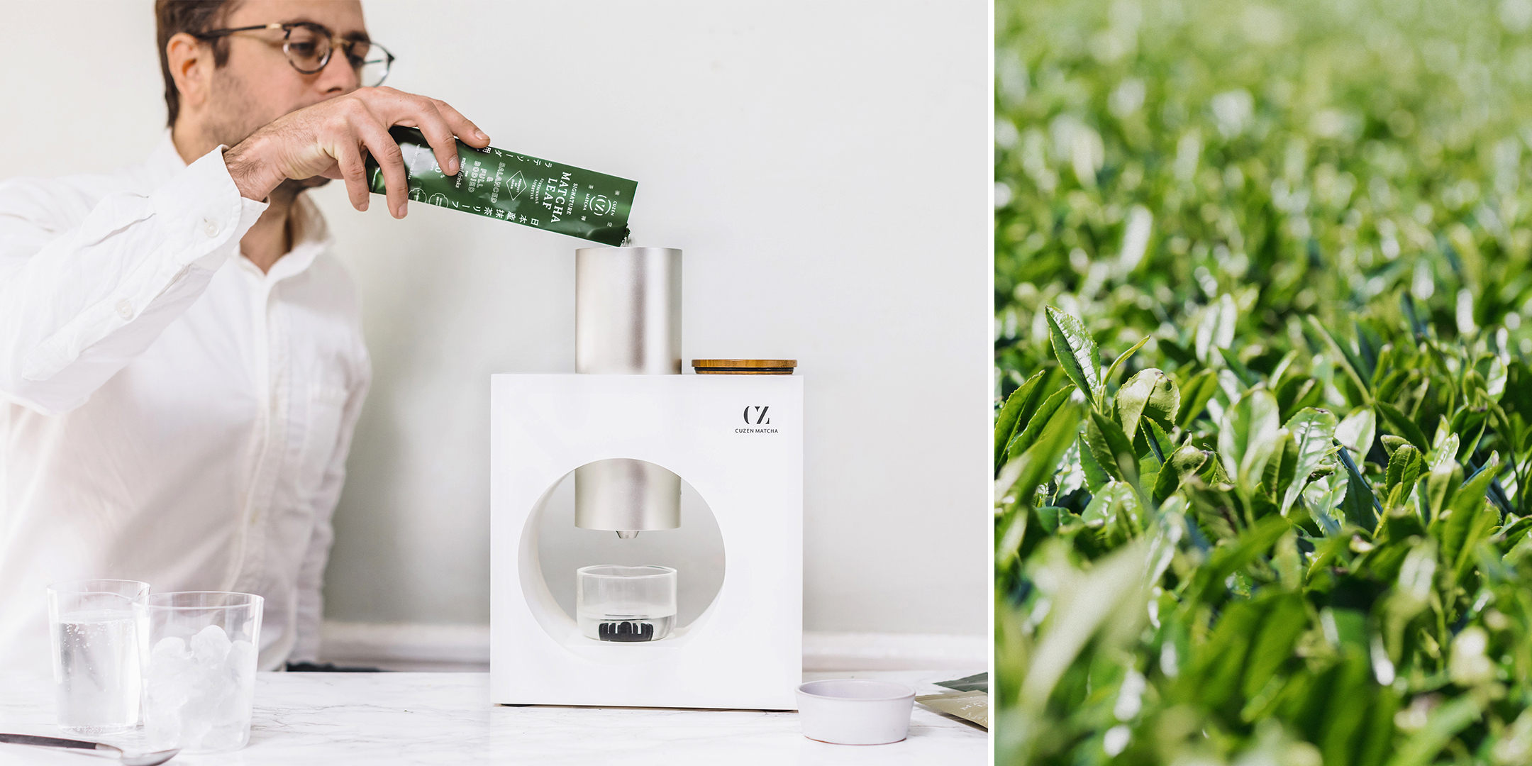 Cuzen Matcha is an innovative at-home matcha offering that produces freshly ground matcha from organic shade-grown leaves via a beautifully designed machine. The Matcha Maker and Matcha Leaf were designed to work together; the tea leaves specially prepared to fit the compact ceramic mill, which produces a fine matcha powder, that’s then automatically whisked into water. Matcha this fresh has a rich umami flavor and gives the drinker calm, long-lasting energy.