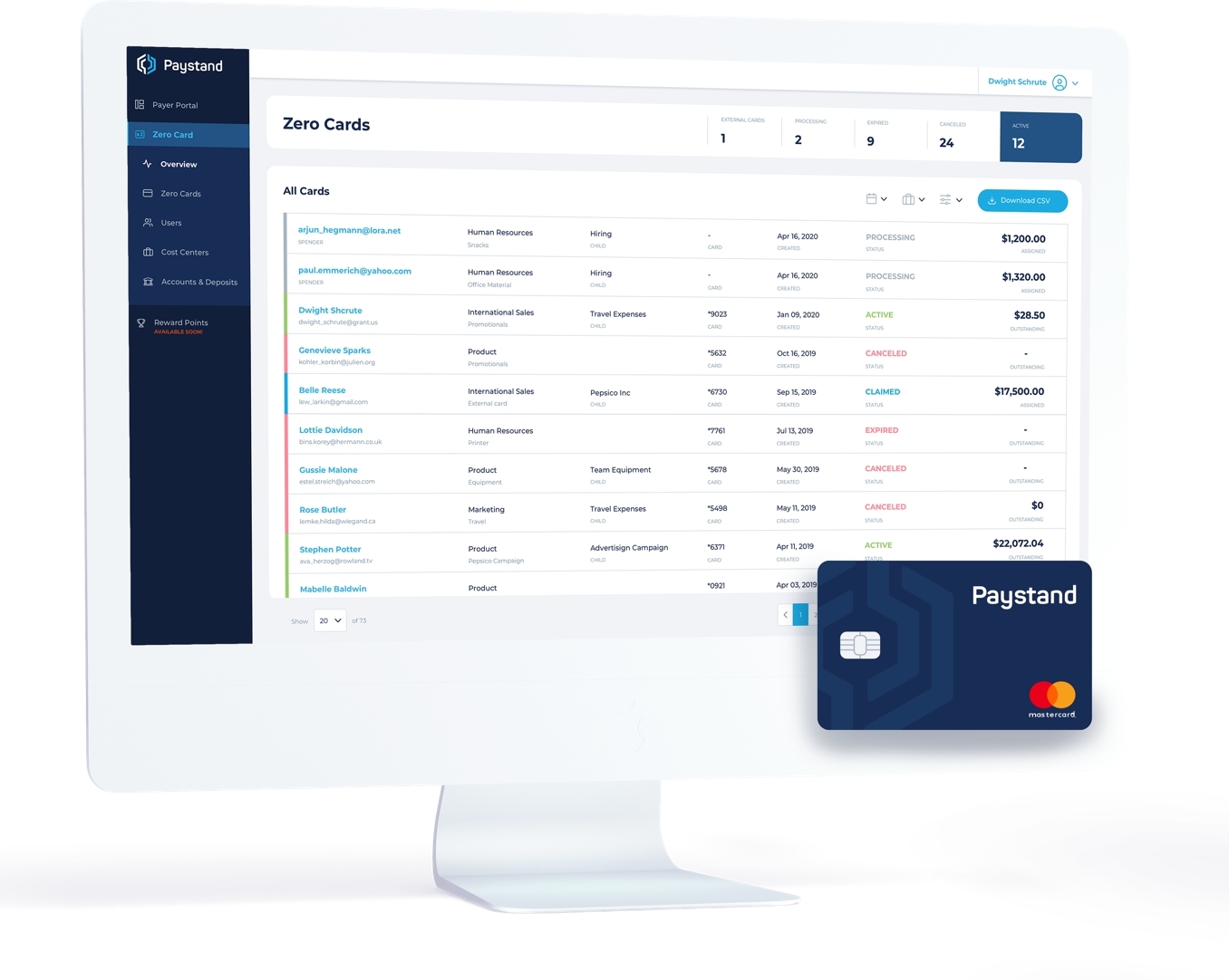 SCOTTS VALLEY, Calif.--(BUSINESS WIRE)--Paystand today released the Zero Card, an entirely touchless, prepaid alternative to corporate expense cards designed for mid-market businesses that need more flexibility and control over budgets and spending. With robust functionality to support several use cases across expense management, fund disbursement, and bulk card creation, the Zero Card is the most versatile ePayable ever made.