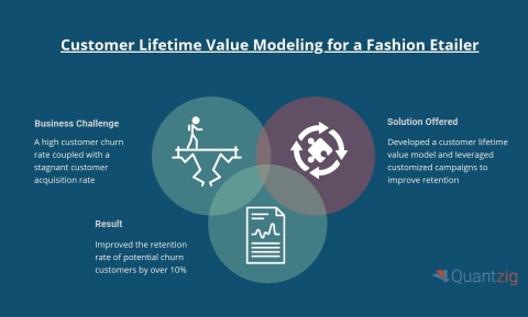 Quantzig recently collaborated with a leading fashion e-commerce company to help develop a customer lifetime value model. A high customer churn rate coupled with a stagnant customer acquisition rate for over six months prompted the client to take immediate action. They were looking at developing a customer lifetime value model to replace their existing customer acquisition and churn rate minimization strategy with a holistic framework to tackle the industry challenges.