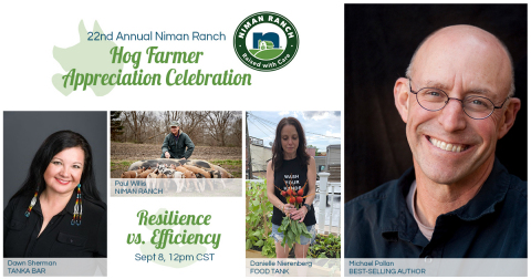 - Celebrated Author and Activist Michael Pollan to Discuss Resilient Agriculture Systems as part of Niman Ranch Hog Farmer Appreciation Celebration Lecture Series.
