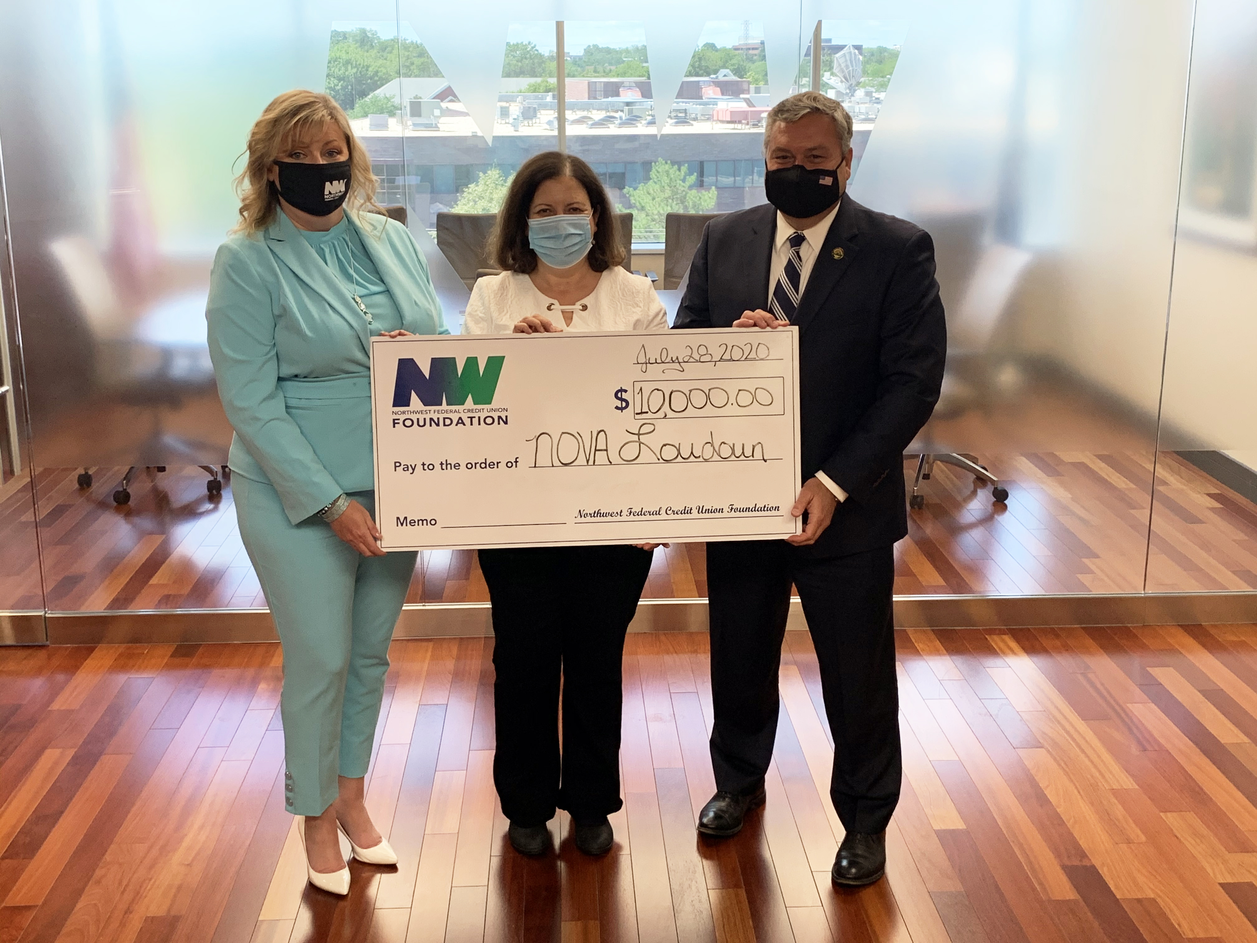 HERNDON, Va.--(BUSINESS WIRE)--The Northwest Federal Credit Union (NWFCU) Foundation, the charitable arm of Northwest Federal Credit Union, recently presented a check for $10,000 to Dr. Julie Leidig, Provost of Northern Virginia Community College (NOVA)-Loudoun for use by the NOVA-Loudoun campus for its Lifeline program, an emergency relief fund for students at the Loudoun Campus. Additionally, $5,000 was presented to Dr. Annette Haggray, Provost of NOVA-Alexandria and $5,000 was presented to Dr. Molly Lynch, Provost of NOVA-Manassas, for the Helping Hands programs on their campuses.