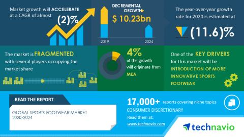 LONDON--(BUSINESS WIRE)--The global sports footwear market size is expected to decline by USD 10.23 billion during 2020-2024. The report also provides the market impact and new opportunities created due to the COVID-19 pandemic. We expect the impact to be significant in the first quarter but gradually lessen in subsequent quarters – with a limited impact on the full-year economic growth.