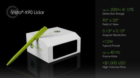 SAN JOSE, Californië--(BUSINESS WIRE)--Cepton Technologies, Inc., een toonaangevende leverancier van ultramoderne, intelligente, op lidar gebaseerde oplossingen, heeft details bekendgemaakt van zijn baanbrekende lidar-sensor van automobielkwaliteit - de Vista® _X90, geprijsd op minder dan $ 1000 voor automobieltoepassingen met grote volumes.