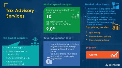 Several strategic and tactical negotiation levers are explained in the report to help buyers achieve the best prices for Tax Advisory Services market. The report also aids buyers with relevant Tax Advisory Services pricing levels, pros and cons of prevalent pricing models such as volume-based pricing, spot pricing, and cost-plus pricing and category management strategies and best practices to fulfil their category objectives.
