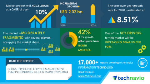 LONDON--(BUSINESS WIRE)--Technavio has been monitoring the product lifecycle management (PLM) in consumer goods market and it is poised to grow by USD 2.02 billion during 2020-2024, progressing at a CAGR of over 10% during the forecast period. The report offers an up-to-date analysis regarding the current market scenario, latest trends and drivers, and the overall market environment.