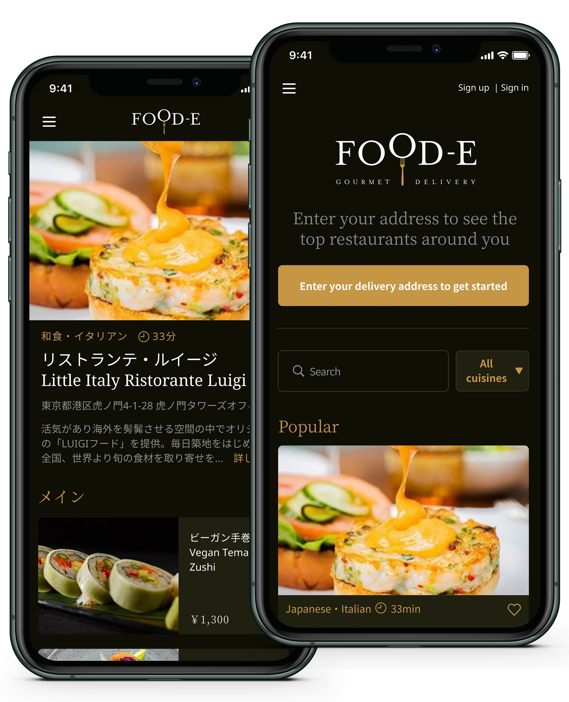 Food-eは、レストランとお客様の双方に向けて、日英のバイリンガルのサービスをご提供する、初めてのオンラインデリバリーサービスでもあります。お好みの言語を選択して、ご利用ください。