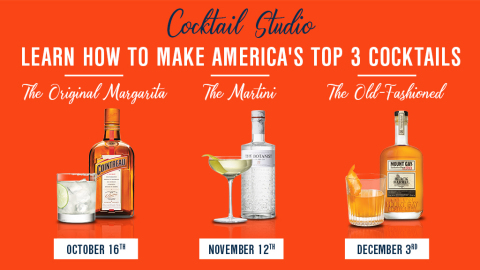 Starting this month, cocktail enthusiasts can learn to craft America’s top three cocktails - The Original Margarita, The Martini and The Old Fashioned – from world renowned mixologists and leading industry experts, just in time for the fall and holiday season. Each Virtual Cocktail Studio session will take participants behind the bar with an expert in the space, from master blenders to head distillers and provide an in-depth look at one of these leading classic cocktails. During each session participants will learn all about the core essential ingredients found in each of these classic cocktails – from Cointreau and The Botanist Islay Dry Gin to Mount Gay Rum – while following a step-by-step tutorial on how to mix up the classics, along with a few twists on the recipes. Each session is slated to be 45 minutes to one hour.
