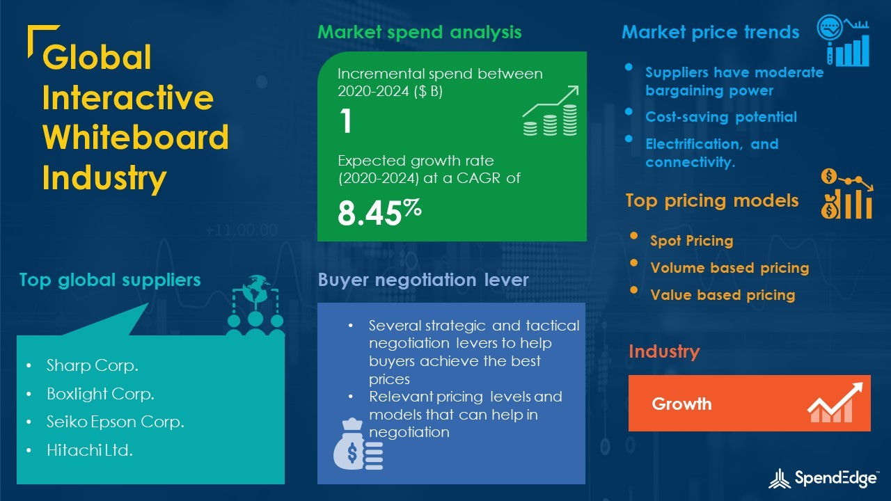 LONDON--(BUSINESS WIRE)--The Interactive Whiteboard market will register an incremental spend of about USD 1 billion, growing at a CAGR of 8.45% during the five-year forecast period. A targeted strategic approach to Interactive Whiteboard sourcing can unlock several opportunities for buyers. This report also offers market impact and new opportunities created due to the COVID-19 pandemic. Download free sample pages
