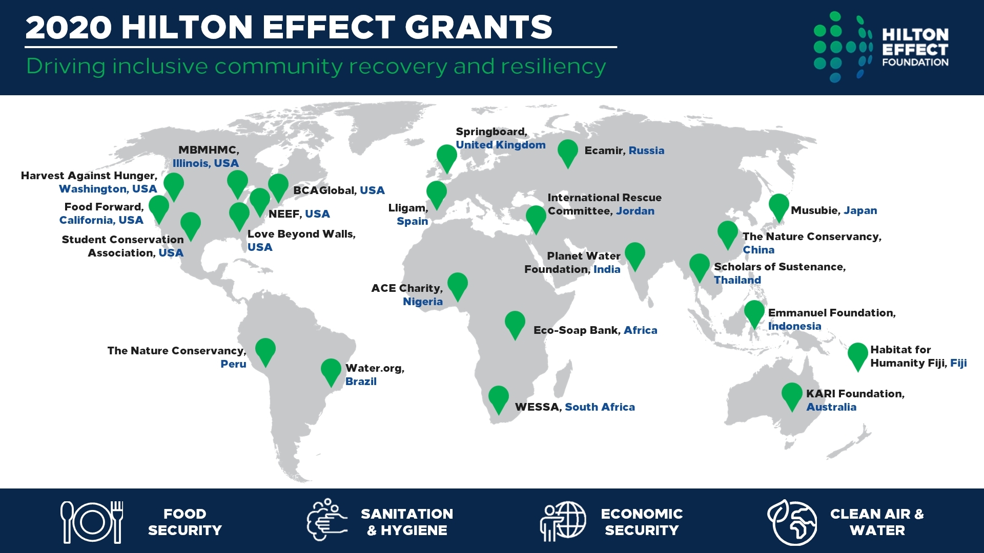 MCLEAN, Va.--(BUSINESS WIRE)--De Hilton Effect Foundation heeft vandaag haar Hilton Effect-begunstigden voor 2020 aangekondigd, waaronder gemeenschapsorganisaties die een directe rol spelen bij het herstel van COVID-19-pandemieën. Dankzij deze subsidies en donaties die al zijn gedaan door de Foundation, die dient als de belangrijkste filantropische tak van Hilton, heeft de Foundation nu meer dan $ 1 miljoen dollar toegekend aan COVID-19-inspanningen voor de gemeenschap.