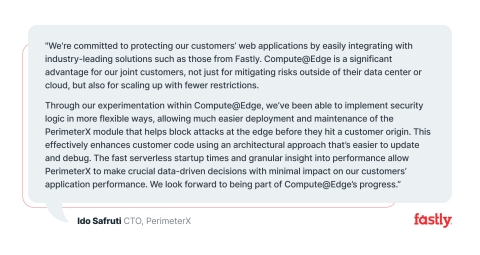 Fastly 完善連結人們和自己喜愛的事物。Fastly 的邊緣雲端平台使客戶能透過處理、服務和保護客戶的應用程式,使其儘可能接近最終使用者(網際網路邊緣),而能夠快速、安全和可靠地建立出色的數位體驗。Fastly 的平台旨在利用現代網際網路進行程式化,並以無與倫比的可見度和最小的延遲來支援敏捷式軟體開發,進而使開發人員能夠在效能和安全性方面進行創新。Fastly 的客戶包含了多家世界上最著名的公司,包括 Vimeo、Pinterest、《紐約時報》和 GitHub。