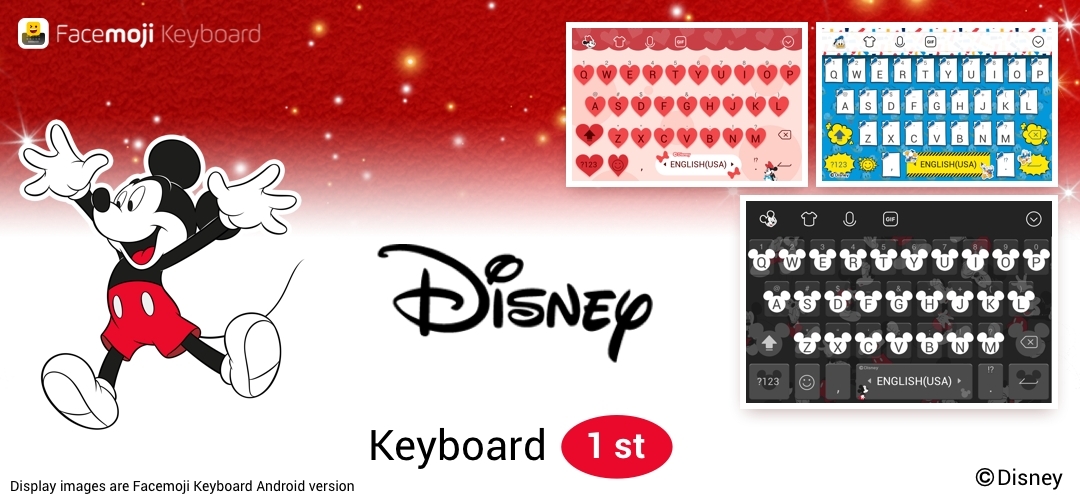 Original keyboard skins featuring popular Disney characters, such as Mickey Mouse, will appear on Facemoji Keyboard and Simeji every month throughout the year. In the first installment, users can choose from three skins featuring “Mickey Mouse,” “Minnie Mouse” and “Donald Duck,” which can be downloaded as in-app purchases.