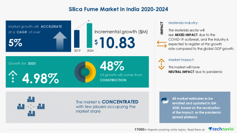 LONDON--(BUSINESS WIRE)--The silica fume market size in India is expected to grow by USD 10.83 million during 2020-2024, progressing at a CAGR of over 5% during the forecast period.