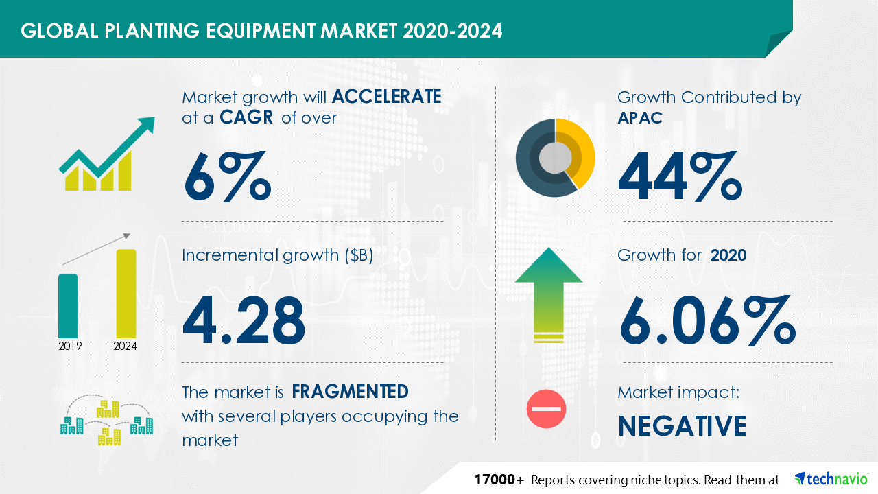 As the markets recover Technavio expects the planting equipment market size to grow by USD 4.28 billion during the period 2020-2024.