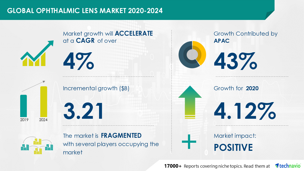 LONDON--(BUSINESS WIRE)--The ophthalmic lens market is poised to grow by USD 3.21 billion during 2020-2024, progressing at a CAGR of over 4% during the forecast period.