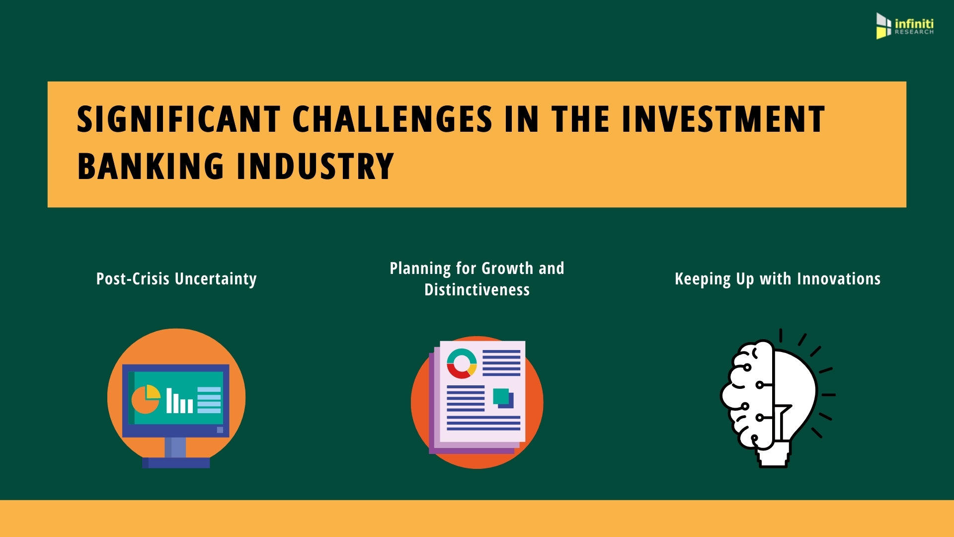 LONDON--(BUSINESS WIRE)--The investment banking industry is highly susceptible to change and fluctuations caused by economic challenges, changing regulations, and technological changes. Recently, there has been an increasing demand for in-house applications, customer management portals, and added cybersecurity and transparency, which has caused substantial challenges for companies in the US investment banking industry. Additionally, there has been a slew of new rules regarding capital, risk management, trading, and liquidity. Consequently, the US investment banking industry sees a dynamic and competitive environment like never before, and staying ahead of the curve is crucial. Infiniti’s market intelligence solutions enable companies to keep abreast of industry developments, identify crucial trends, challenges, and potential growth opportunities, and develop unique strategies to champion the industry. To leverage Infiniti’s market intelligence solutions for data-driven insights on the US investment banking industry and unparalleled growth strategies, request a free proposal.