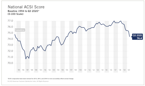 The national ACSI score (or ACSI composite) reflects customer satisfaction across all sectors and industries over a rolling 12-month period. For more, follow the American Customer Satisfaction Index on LinkedIn and Twitter at @theACSI or visit www.theacsi.org.