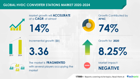 LONDON--(BUSINESS WIRE)--Technavio estimates the global HVDC converter stations market to grow by USD 3.36 billion, progressing at a CAGR of almost 14% during the forecast period. The report offers an up-to-date analysis regarding the current market scenario, the latest trends and drivers, and the overall market environment.