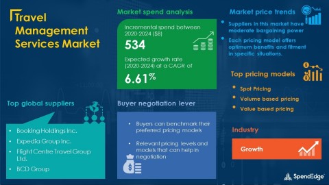 LONDON--(BUSINESS WIRE)--The Travel Management Services Market is poised to experience spend growth of more than USD 534 billion between 2020-2024 at a CAGR of over 6.16%. The report also provides the market impact and new opportunities created due to the COVID-19 pandemic. Request free sample pages