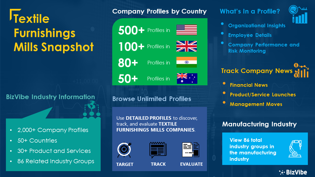 Textile Furnishings Mills Industry | Discover, Track, Compare, Evaluate Companies on BizVibe